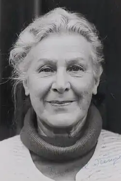 In 1945, Junge was with Hitler in Berlin. During Hitler's last days in Berlin, he would regularly eat lunch with his secretaries Junge and Gerda Christian.[9] After the war, Junge recalled Gerda asking Hitler if he would leave Berlin. This was firmly rejected by Hitler.[10] Both women recalled that Hitler in conversation made it clear that his body must not fall into the hands of the Soviets. He would shoot himself.[10] Junge typed Hitler's last private and political will and testament in the Führerbunker the day before his suicide.[11] Junge later wrote that while she was playing with the Goebbels children on 30 April, "Suddenly [...] there is the sound of a shot, so loud, so close, that we all fall silent. It echoes on through all the rooms. 'That was a bull's-eye,' cried Helmut [Goebbels] with no idea how right he is. The Führer is dead now."