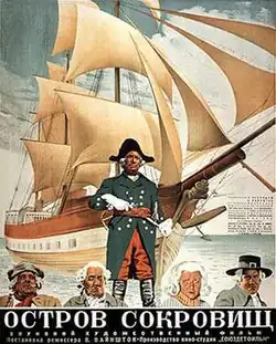 Treasure Island (Russian: Остров сокровищ, romanized: Ostrov sokrovishch) is a 1938 Soviet adventure film directed by Vladimir Vaynshtok and starring Osip Abdulov, Mikhail Klimov and Nikolai Cherkasov. It is an adaptation of Robert Louis Stevenson's novel Treasure Island. The film was one of several British literary classics turned into films in the Soviet Union during the era. A number of changes were made to introduce anti-British elements and to promote leninist-marxist ideology. The book's character of Jim Hawkins is transformed into a young woman named Jenny, and the characters are attempting to find the treasure in order to fund an Irish and anti-British rebellion.[1] An English language version was directed by David Bradley.