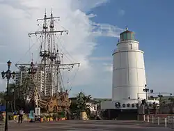 Since Treasure Island Shopping Center is located around the Port of Kaohsiung, the mall takes the ships sailing the sea as the overall design image: empty ground squares, parking lots are like the endless sea, and the sea is dotted with giant lighthouses and pirate ships. The entire mall can also be regarded as a giant ship. The ground floor is a vast ship deck. Through the central sunken starlight stage and the multiple entrances and exits around it, the ground floor deck and the business space of the basement cabin are connected.[3]