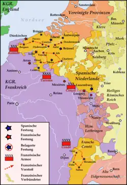 For Louis, the treaty was a way to threaten Spain without declaring war. He argued that the Spanish Netherlands were his by right, making the War of Devolution a 'voyage'. Castelo Melhor hoped the French alliance would end the Restoration War on terms favourable to Portugal.[8]