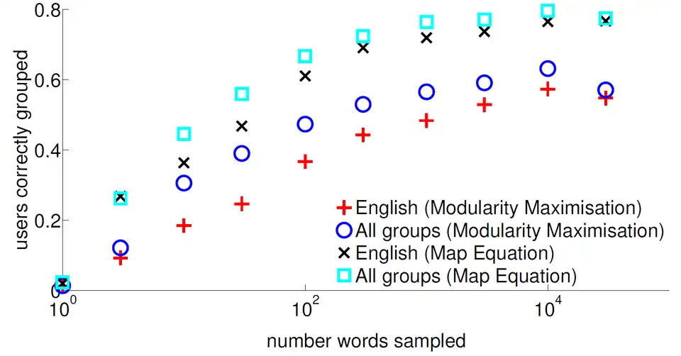 The problem of detecting the community features is one of the main issues in the study of networking systems. Social networks naturally tend to divide themselves into communities or modules.[19] However, some world networks are too big so they must be simplified before information can be extracted.[20] As a result, an effective way of dealing with this drawback for smaller communities is by using modularity algorithms in order to partition users into even smaller groups.[19] For larger ones, a more efficient algorithm called 'map equation' decomposes a network into modules by optimally compressing a description of information flows on the network.[20] Each community was therefore characterised according to the words they used the most, based on a ranking algorithm. To determine the significance of word usage differences, word endings and word lengths were also measured and showed that the pattern found was the correct one. Moreover, these studies also helped in predicting community membership of users, by comparing their own word frequencies with community word usage. This helped in forecasting which community a certain user is going to access based on the words that they are using.[12]