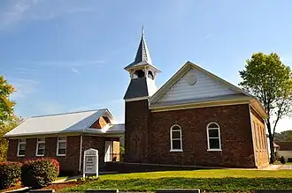 Trinity United Methodist Church is a historic Methodist church building located near Ellett, Montgomery County, Virginia. It was built between 1908 and 1910, and is a one-story, four-bay, nave plan brick structure. It has a two-stage corner tower, containing a vestibule at the northwest corner. The second stage of the tower takes the form of an open belfry with sawn brackets supporting a conical cap with finial. A Sunday school wing added in 1961.[3]