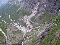 It is part of Norwegian County Road 63 that connects the town of Åndalsnes in Rauma and the village of Valldal in Fjord Municipality. It is a popular tourist attraction due to its steep incline of 10% and eleven hairpin bends up a steep mountainside. During the top tourist season, about 2,500 vehicles pass daily pass this landmark.[3][4] During the 2012 season, 161,421 vehicles traversed the route, compared to 155,230 vehicles during 2009.[5]