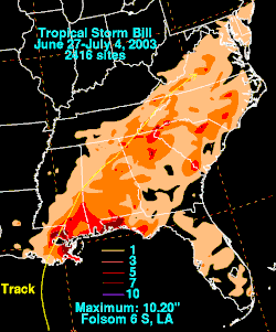 - ^ a b New Orleans National Weather Service (2003). "Tropical Storm Bill Post Tropical Cyclone Report". Archived from the original on September 30, 2006. Retrieved October 22, 2006.