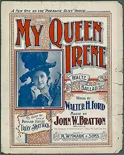 Shattuck made her first New York vaudeville appearance at Tony Pastor's theater in 1896.[1] Her first major role came the following year playing Mephisto in Very Little Faust and Much Marguerite,[4] staged at Hammerstein's Olympia Theatre.[5] Shattuck went on to tour for a number of seasons as a lead performer in several traveling burlesque and vaudeville companies. When John Philip Sousa's marches were the rage in the 1890s, Truly caused a bit of controversy by putting words to his music and singing them at music halls such as Koster & Bial's in New York. Shattuck spent the last year or so of the 19th century in Germany performing at Berlin and Dresden before supporting Edna May in the 1900 London production of An American Beauty,[1][6]