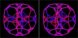 ![]() ![]() Two Schlegel diagrams, centered on truncated tetrahedral or truncated octahedral cells, with alternate cell types hidden. | ||