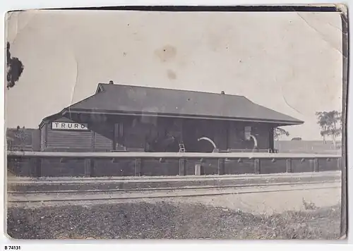 Truro station opened on 24 September 1917 with the opening of the branch line from Nuriootpa.[1] Before the railway even reached Truro, public discussions proposed continuing the line further to Dutton, Steinfeld and Sedan.[2] More proposals included the extension of the line to the Murray River at Blanchetown.[3] The proposal was rejected in 1923.[4] The station at Truro was named after the City of Truro in Cornwall, England.[5] The station facilities at Truro consisted of a yard, goods shed, livestock sidings and a turntable for locomotives. A turntable for a Saurer railcar was also added from 1923. By 1966, the station facilities consisted of a cattle race, station building, end loading sheep race, heavy portable ramp for unloading / loading calves, pigs or sheeps between sheep yards & road vehicles, a goods platform with ramp and a manually operated locomotive turntable.[6]