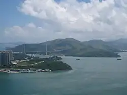 Tsing Chau Tsai Peninsula administratively belongs to Tsuen Wan District, while the remaining areas of Lantau Island belong to Islands District.[1] It is an exclave and it is only connected by Kap Shui Mun Bridge with other part of Tsuen Wan District, like Ma Wan.