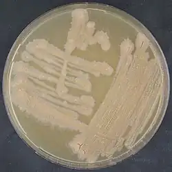 Tsukamurella tyrosinosolvens is a Gram-positive and aerobic bacterium from the genus Tsukamurella.[1][2][3] Tsukamurella tyrosinosolvens bacteria can cause in rare cases infections in humans.[4][5]