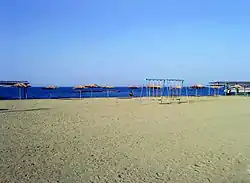 The water in it is partly mineralized, resembling saline waters.[2][3] It underwent reconstruction in 1977. Its total volume is 1.2 km3 (although some sources state a general volume of 0.8 km3). The surface area of the water is 210 km2, with an average depth of 4.8 meters. Its depth reaches 4 meters, and its maximum capacity is 46.0 m3/s. Through the intermediate canal, it collects surplus waters of the Zarafshan River and is replenished from the Amu-Bukhara canal that links to the Amu Darya River.[2] The Tudakul reservoir is a habitat for species listed in the Uzbekistan Red Book, including waterfowl, aquatic animals, large-scale fish, turtles, and gulls.[4] In 1960, the Tudakul Fish Hatchery was established on an area of 30 thousand hectares within the reservoir's foundation.[2] In 2020, a new resort, the "Silk Road Family Repost" touristic beach zone, was established on the shore of the Tudakul Quyimozor water reservoir. A few weeks after this event, the Tudakul Quyimozor reservoir was registered under the Ramsar Convention.[5][6][4]