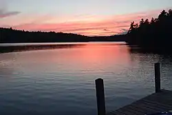 According to the United States Census Bureau, the town has a total area of 49.4 square miles (128.0 km2), of which 40.5 square miles (104.9 km2) are land and 8.9 square miles (23.1 km2) are water, comprising 18.06% of the town.[1] Tuftonboro is drained by the Melvin River and Beech River, tributaries of Lake Winnipesaukee. Mirror Lake is in the south, and Dan Hole Pond is in the north. The highest point in Tuftonboro is the south peak of Mount Shaw, elevation 2,930 feet (890 m) above sea level, on the town's northwestern boundary.