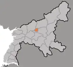 Political Prison Camp No. 18 is a large prison labour colony in Tŭkchang district and Pukch'ang County at the banks of Taedong River. In 1995, Camp 18 Tukchang part was returned to ordinary society and is called “Tukchang Coal Mine Complex”(득장지구탄광련합기업소).[2][3] The camp was dismantled in 2006 and maybe reopened in 2016.[4][5]