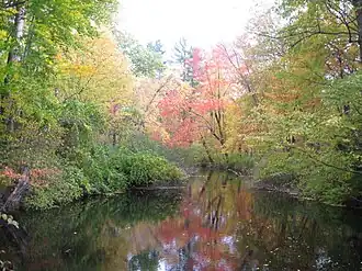 The source of the Turkey River is the outlet of Little Turkey Pond in Concord, New Hampshire. The river travels southeast through the campus of St. Paul's School, winding through the outskirts of Concord, and entering Bow before joining the Merrimack near the junction of Interstate 93 and Interstate 89. In May 2006 record amounts of rainfall over two days caused the Turkey River to flood the campus of St. Paul's School,[2][3] forcing the school year to be ended prematurely.[4]