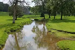 Iron ore was observed on the creek by the 1800s. This ore was pinkish and has been described as "compact, coarse, siliceous". It resembled ores from near Danville.[7] A soil known as the Crestmore silt loam occurs in small areas near the creek.[8]