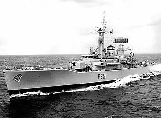 - Type 12I Leander-class frigates (though removed in the eight ships given the Ikara conversion in 1970-78 and the five ships given the Seawolf missile conversion in 1978-84).[14]
