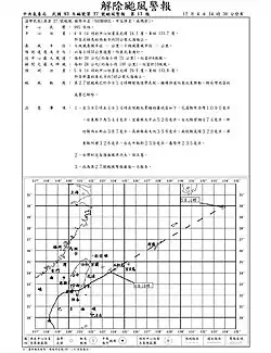 In Taiwan, the Central Weather Bureau issued a land warning for the island in advance of the typhoon. Potential impacts, which would likely be enhanced by the East Asian Monsoon, prompted Taiwanese president Chen Shui-bian to postpone political marches and campaign rallies intended for the upcoming presidential elections.[17] In anticipation for the typhoon, schools and businesses in southern and eastern Taiwan were closed, along with the delaying of rail and air traffic. Kaohsiung International Airport was closed during the morning of December 4.[18]