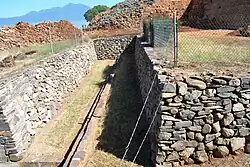 On each of the yácatas was a temple made of wood, in which the most important rites of the Purépecha people and government took place, including burials, of which about sixty have been found.[14] The burials that have been excavated contain rich grave goods and are probably of kings and high priests.[2][4] Three of the yácatas remain unreconstructed.[15]