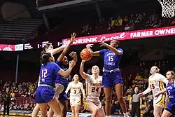 The UMass Lowell River Hawks women's basketball team represents the University of Massachusetts Lowell in Lowell, Massachusetts, United States. The River Hawks started play in NCAA Division I beginning in 2013 and joined the America East Conference.[2] As part of their transition from Division II to Division I, they were not eligible for postseason play until the 2017–2018 season.[3][4][5]
