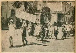 The church's successful competition with the ongoing and widespread atheistic propaganda, prompted new laws to be adopted in 1929 on "Religious Associations"[19] as well as amendments to the constitution, which forbade all forms of public, social, communal, educational, publishing or missionary activities for religious believers.[20] The Church thereby lost any public voice and was limited strictly to religious services that took place in the walls of churches. Atheist propaganda continued to have an unlimited right of propagation, which meant that the Church could not respond to the arguments used against it any longer.[19] The Church was not permitted to run study groups for religious adults, organize picnics or cultural circles, or organize special services for groups of believers, such as schoolchildren, youth, women or mothers.[21] Any pursuit of the true pastoral duties by clergymen became punishable by law.[18] These laws also forbade Christian charity efforts, participation of children in religious activities, and religious functionaries were restricted to the area associated with them.[22]