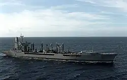 USS Cimarron (AO-177) was the lead ship of the Cimarron-class of fleet oilers of the United States Navy. Cimarron was built at the Avondale Shipyards in New Orleans, Louisiana (USA) starting in 1978 and was commissioned in 1981 for service in the Pacific Fleet. Commissioned at the Naval Supply Center, 10 January 1981, in Oakland, California. The oiler was home ported in Pearl Harbor, Hawaii. The total cost for the ship was $136.7 million.[1]