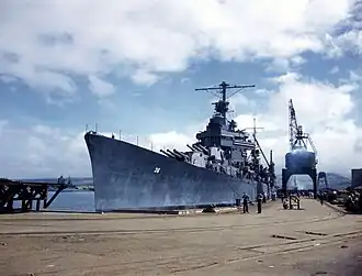 ![]() USS Minneapolis (CA-36) at Pearl Harbor Naval Shipyard on 11 April 1943