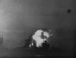 As the prospect of war grew, New Mexico was based at Pearl Harbor, Hawaii, from 6 December 1940 to 20 May 1941. She then left Pearl Harbor to join the Atlantic fleet at Norfolk on 16 June for neutrality patrol duty along the Atlantic coast.[4][8] In the Atlantic, she served on three 7- to 14-day "shifts" following destroyers to escort convoys across the Atlantic.[12] On 10 December, while headed to Hampton Roads (en route to the west coast after the Japanese attacked Pearl Harbor), she accidentally rammed and sank the U.S. freighter Oregon south of the Nantucket Lightship off Boston Harbor.[4][13] The owner of Oregon sued the federal government for the loss of the ship, but the courts found New Mexico blameless in the collision.[14] She managed to reach the Panama Canal by 17 January 1942.[15]