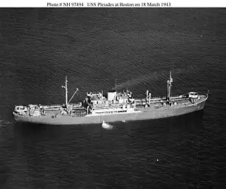 Built in 1939 as for the Romanian State Maritime Service by Cantieri Navali Riuniti, Palermo, Italy, was taken over while lying idle at New York City, 25 June 1941, by the U.S. Maritime Commission under the authority of Public Law 101 (77th Congress) and Executive Order 8771; acquired by the Navy on a bareboat charter from WSA, 11 August 1941; renamed Pleiades (AK-46), 3 September 1941; and commissioned 25 October 1941.