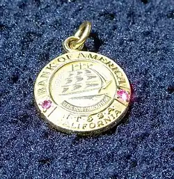 The Portsmouth was adopted as the logo for the San Francisco-founded Bank of America by its founder, Amadeo Giannini, in recognition of the ship's role in securing the city. Service pins issued to employees by the bank not only feature the ship's image, but include its name inscribed beneath.[1].