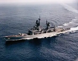 USS William H. Standley (DLG/CG-32) was a Belknap-class destroyer leader / cruiser. She was named for Admiral William Harrison Standley, former Chief of Naval Operations and ambassador to the Soviet Union. She was launched as DLG-32, a frigate, and reclassified Cruiser on 30 June 1975.