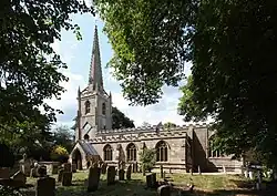 The Grade I listed parish church, St Michael and All Angels, dates back to the 12th century and was significantly restored in 1864 by Edward Browning.[5] It is part of the Uffington Group of churches that also includes Tallington, Barholm, West Deeping, Wilsthorpe, Braceborough and Greatford. The thatched public house on Bertie Lane in the village is called the Bertie Arms.[6] On the west side of the village is a nursery.