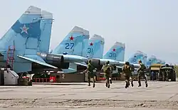 Satellite imagery from 2016 shows the base to be active, with 36 Sukhoi Su-35 Flanker aircraft based on the field. Air International's April 2017 issue confirmed the 22nd Guards Fighter Aviation Regiment was still flying Su-27 variants.[8]