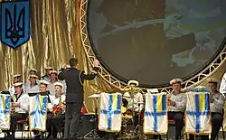 The Headquarters Band of the Military Music Center of the Ukrainian Naval Forces (Ukrainian: Центр військово-музичного мистецтва Військово-Морських Сил Збройних Сил України), also known as the Ukrainian Navy Band (Ukrainian: Оркестр Військово-морських сил України) is a Ukrainian military band based in Sevastopol.[2] It was founded on February 18, 1993.[3] The Band can perform any musician genre composition. It is a part of the Military Music Department of the General Staff of the Ukrainian Armed Forces.