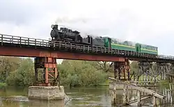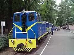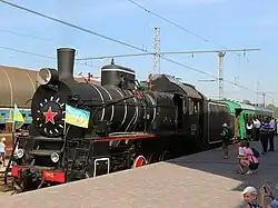 Railways in Ukraine use various gauge types. The broad gauge (1,520 mm), a legacy of Imperial Russian and Soviet times, dominates the landscape, and narrow-gauge railways (750 mm) also exist, but plans are being made to construct, restore or switch to more standard-gauge railways (1,435 mm) for better train connections with the rest of Europe.[19] About half of railways in Ukraine are electrified (some of which have been damaged during the ongoing Russo-Ukrainian War and temporarily switched to diesel trains).[20]