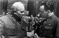 In October 1964, Khrushchev was deposed by a joint Central Committee and Politburo plenum and succeeded by another collective leadership, this time led by Leonid Brezhnev, born in Ukraine, as First Secretary and Alexei Kosygin as Chairman of the Council of Ministers.[53] Brezhnev's rule would be marked by social and economic stagnation, a period often referred to as the Era of Stagnation.[54] The new regime introduced the policy of rastsvet, sblizhenie and sliianie ("flowering", "drawing together" and "merging"/"fusion"), which was the policy of uniting the different Soviet nationalities into one Soviet nationality by merging the best elements of each nationality into the new one. This policy turned out to be, in fact, the reintroduction of the russification policy.[55]