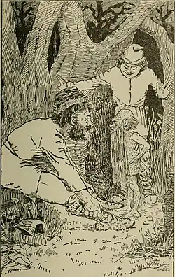 Polissya Ukrainians wore bast shoes (lychaky) while Carpathians had their postoly shoes made from leather; choboty boots with a seamed or seamless shaft were popular throughout Ukraine.[7] The groom gifted choboty to the bride and her mother; this custom is centered at the Christmas Eve story by Nikolai Gogol.[8] They were also featured in many winter divination rituals.[8]
