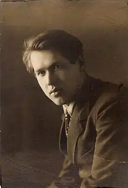 In 1918 he graduated and joined his family in Moscow, where they had moved in 1915. He enrolled in the MSU History and Philology Faculty, but after two months he had to abandon his studies and go to work to support his family.[1]
