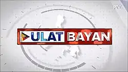 Ulat Bayan (transl. Report (to the) nation) is a Philippine television news broadcasting show broadcast by PTV. Originally anchored by Aljo Bendijo and Catherine Vital, it premiered on July 10, 2017, replacing PTV News and was replaced by the weeknight edition of PTV News only. The newscasts will be back on September 7, 2020, replacing the weeknights edition of PTV News. Diane Querrer, Audrey Gorriceta and Dominic Almelor for weeknights and Cleizl Pardilla, Patrick De Jesus and Daniel Manalastas for weekends serve as the anchors. The newscast airs from Monday to Sunday at 6:00 p.m. to 7:00 p.m. (PST) on PTV and its livestreaming channels. It was simulcast on Radyo Pilipinas - Radyo Publiko every weekends and Radyo Pilipinas 2 918 every Saturday.