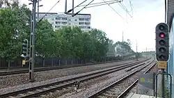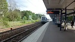 Ulriksdal is a station on Stockholm's commuter rail network, located 7.1 km north of Stockholm Central Station in the Järva area within Solna Municipality. The station consists of a single island platform with a ticket hall on the platform, accessible via an underground pedestrian tunnel. As of 2015, the station had approximately 3,600 boardings per weekday.[2] The station is located approximately 1.4 km south-west of Ulriksdal Palace.[3]