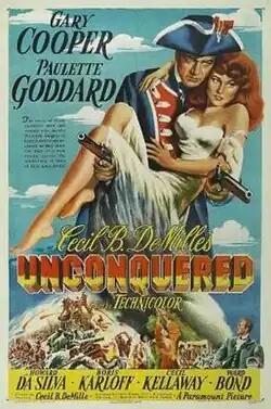 Unconquered is a 1947 American historical epic adventure film produced and directed by Cecil B. DeMille and starring Gary Cooper and Paulette Goddard. The supporting cast features Boris Karloff, Cecil Kellaway, Ward Bond, Howard da Silva, Katherine DeMille (the director's daughter), C. Aubrey Smith and Mike Mazurki. Released by Paramount Pictures, the film depicts the violent struggles between American colonists and Native Americans on the western frontier in the mid-18th century during the 1763 Pontiac's Rebellion, primarily around Fort Pitt (modern-day Pittsburgh). The film is characterized by DeMille's lavish style, including colourful costumes and sets, thousands of extras, violence, and sensationalism.