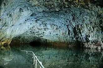 A total of 164 eruption centres (volcanoes, vents and cones) have been identified within the McBride Basalt Province. Remnants of older flows dated at around 8 million years occur outside of the national park. The majority of flows are less than 8 million years.[11][10] The volcanic activity that formed the tubes occurred approximately 190,000 years ago[11][12] and the Undara volcano expelled massive amounts of lava onto the surrounding Atherton Tableland, covering about 1550 square kilometres.[11] In total it was estimated that over 23 billion cubic metres (810×10 9 cu ft) of lava was released.[6]