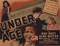 Under Age is a 1941 American crime film directed by Edward Dmytryk and starring Nan Grey, Alan Baxter, Mary Anderson, and Tom Neal.[1] It was produced and distributed by Columbia Pictures.