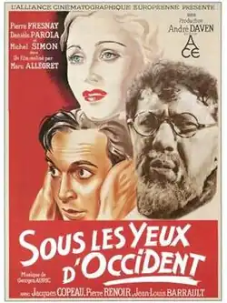 Under Western Eyes (French: Razumov: Sous les yeux d'occident) is a 1936 French drama film directed by Marc Allégret and starring Pierre Fresnay, Danièle Parola and Michel Simon.[1] It is an adaptation of Joseph Conrad's 1911 novel Under Western Eyes. It was shot at the Billancourt Studios in Paris. The film's sets were designed by the art director Eugène Lourié.