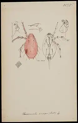 - ^ Davids, C.; Crowell, R. M.; de Groot, C. J. (1985). "The developmental cycles of two co-occurring sponge mites Unionicola crassipes (Müller) and Unionicola minor (Soar) (Acari, Hydrachnellae)". Hydrobiologia. 122 (3): 199–205. doi:10.1007/BF00018279. S2CID 2879331.