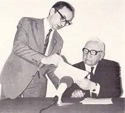 After the 1968 Polish political crisis, the surveillance of the United Evangelical Church clergy by the security service intensified. The main reason for this was the numerous visits by fellow believers from abroad.[48] Concerned that guests were speaking in congregations, teaching at youth courses, gatherings, and camps,[49] the authorities decided to restrict visits to Poland for foreign guests. The United Evangelical Church Presidium implemented the authorities' recommendations regarding guests. Congregants were instructed to report on every foreigner attending services. During this period, representatives of the Pentecostal movement from the US and Western Europe showed great activity. They eagerly participated in services and vividly described the persecution of Pentecostals upon their return to their countries, both by communist authorities and by the United Evangelical Church Presidium.[50] The matter seemed serious enough to the authorities that on 11 December 1970, a meeting was held between the Church Presidium and representatives of the Office for Religious Affairs. During the meeting, Tadeusz Dusik, the director for non-Catholic religious affairs, accused: Foreign centers are increasingly actively working to transform the United Evangelical Church into their outpost in the territory of the Polish People's Republic.[51]