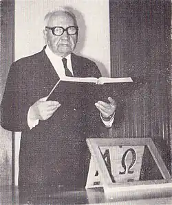 Over time, there was growing resistance to Krakiewicz's actions. In January 1975, representatives of all factions held consultative meetings aimed at eliminating Krakiewicz from the council's Presidium on charges of unchristian behavior. Only representatives of the Free Christians opposed this, to which Krakiewicz belonged. It was agreed that Konstanty Sacewicz would be elected president at the VIII Synod of the United Evangelical Church.[51] Stanisław Krakiewicz sought help from religious authorities, assuring them of his loyalty and patriotism. At the same time, he criticized some United Evangelical Church activists, especially the Pentecostals, accusing them of being "insubordinate, linked to the West, unpatriotic", and calling them "untrue Poles".[61] However, religious and political authorities believed that the president should be changed,[51] considering Krakiewicz's position too weak and his personality too conflict-ridden.[62] Krakiewicz was then 83 years old, so perhaps it was believed that he had served his purpose.[61]