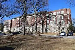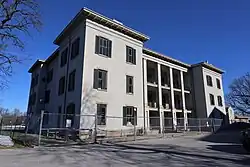 A new building was completed in 1933.[12] The same year, a smokestack was added to the old building as part of a heating plant that served both buildings.[5][8] During the 1930s, the old building served as housing for nurses and doctors.[7][8][13]