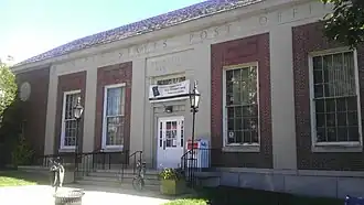US Post Office-Bronxville is a historic post office building located at Bronxville in Westchester County, New York, United States. It was built in 1937 and was designed by consulting architect Eric Kebbon (1891–1964) for the Office of the Supervising Architect. It is a 1+1⁄2-story building faced with brick and trimmed in limestone in the Colonial Revival style. The front facade features six extremely flat limestone pilasters that flank the central entrance. The lobby features a mural by John French Sloan (1871–1951) painted in 1939 and titled The Arrival of the First Mail in Bronxville in 1846.[3]