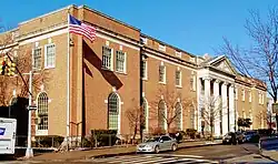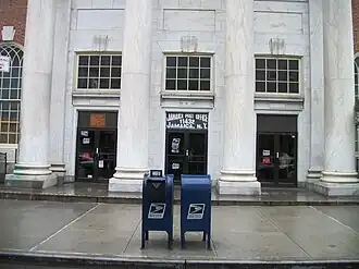 US Post Office-Jamaica Main is a historic post office building located at the northwest corner of 164th Street and 89th Avenue in Jamaica in Queens County, New York, United States. It serves the 11432 ZIP Code. It was built in 1932–1934, and is one of two post offices in New York City designed by the architects Cross & Cross as a consultant to the Office of the Supervising Architect. The building is a two-story brick building on a light gray granite base with marble trim in the Colonial Revival style. It features a handsome marble portico supported by four Ionic order columns.[3]