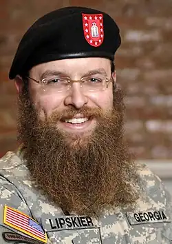 Historical photographs from the 1960s through the 1970s show soldiers assigned to reconnaissance, ranger, and armor units informally wearing black berets with various units affixing a wide variety of custom beret flashes that were worn over the left eye or left temple.[30] In 1975, the Army formally authorized its ranger units to wear the black beret.[31] If earned, some of these ranger units had their rangers affix their Ranger Tab to the top edge of their organizational beret flash along with their regiment or unit DUI, polished metal officer rank insignia, or chaplain branch insignia affixed to its center and worn over the left eye.[30][31][32]
