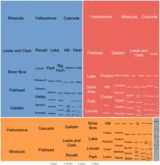 Flathead | 9,746 | 31.02% | 11,699 | 37.24% | 9,109 | 28.99% | 862 | 2.74% | -1,953 | -6.22% | 31,416 |